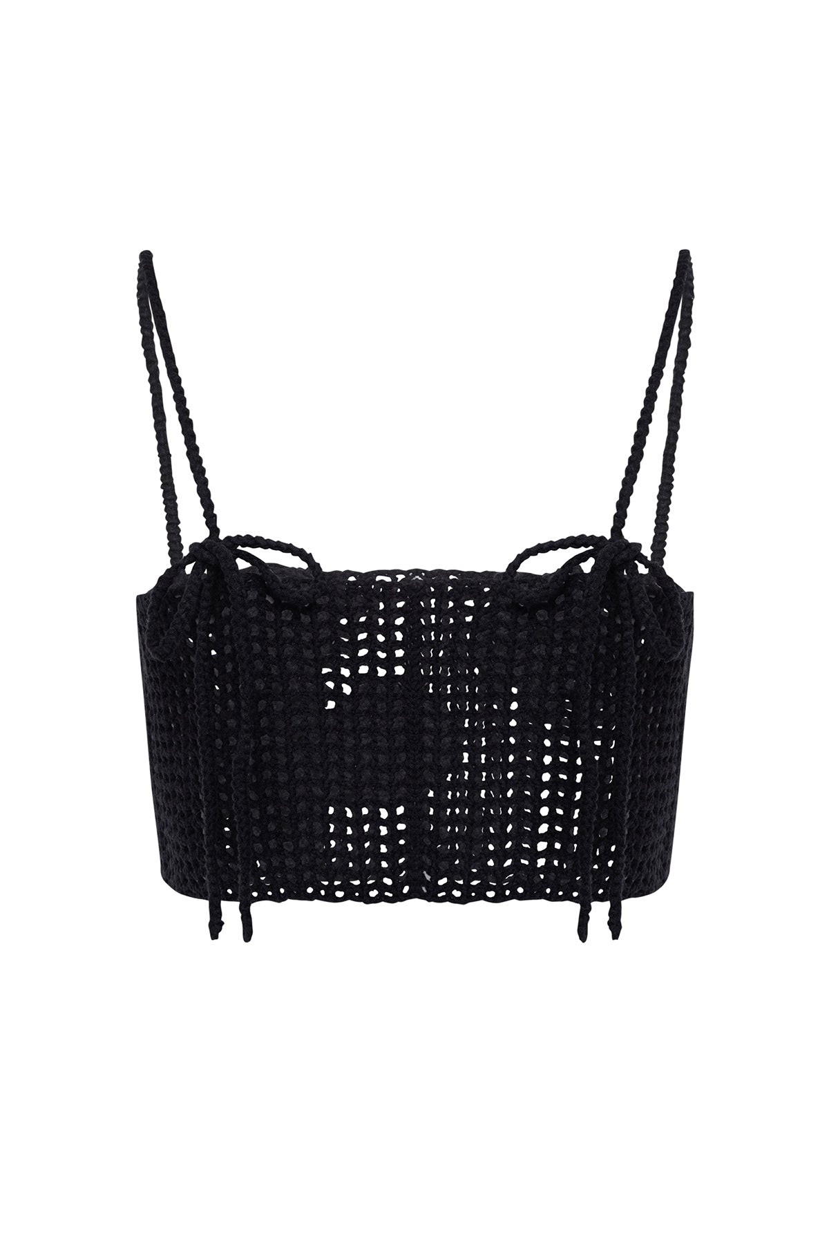 Handmade knitted top is decorated with handcrocheted flowers at the bust to create a 3D effect. Simple straps. Unlined.
